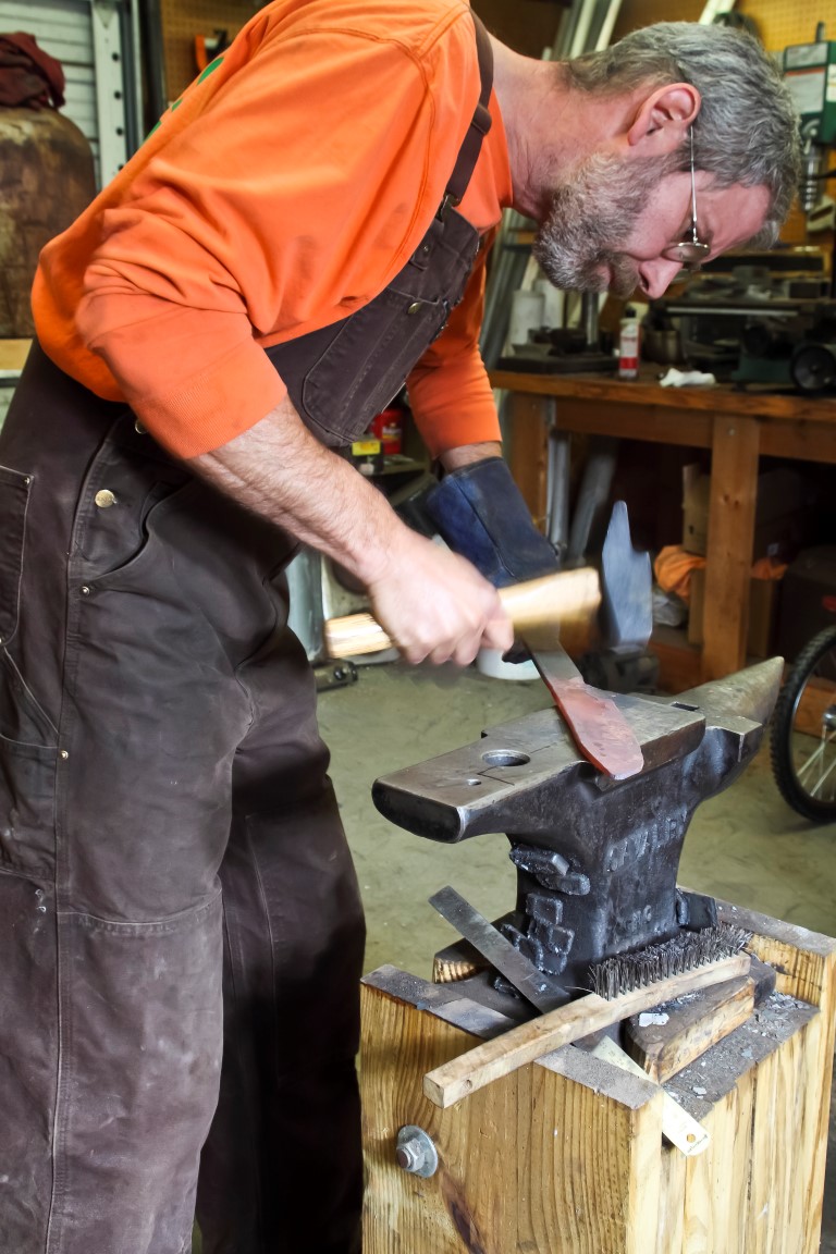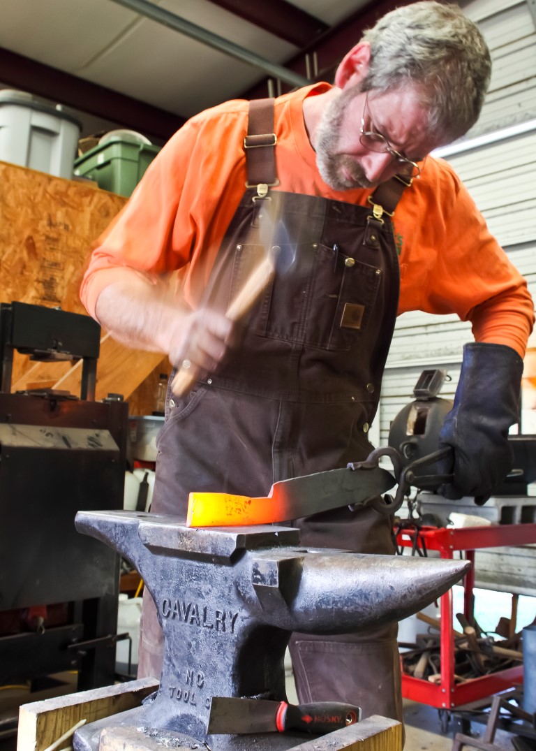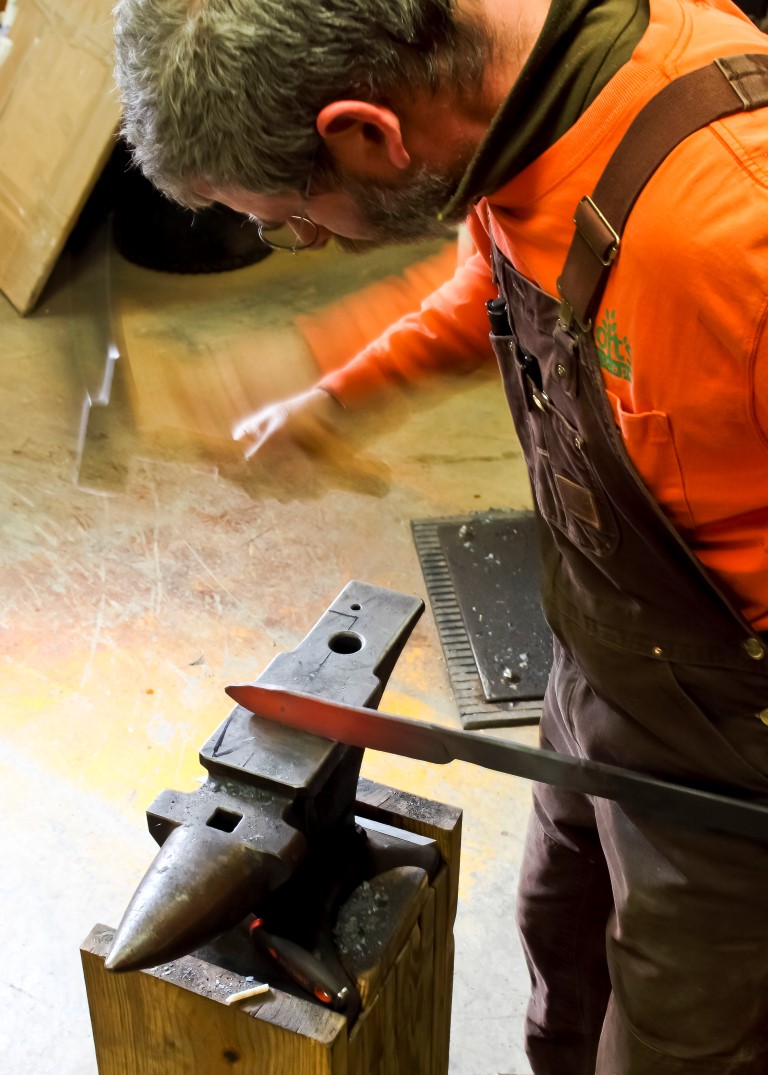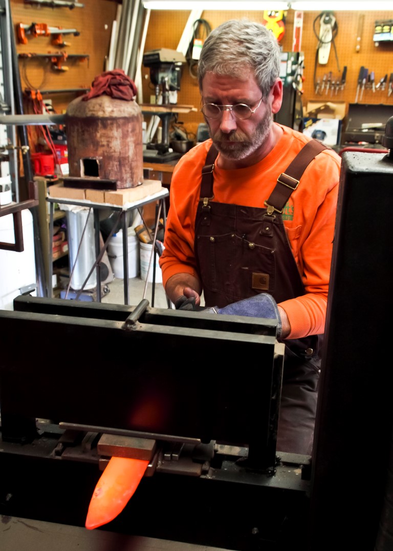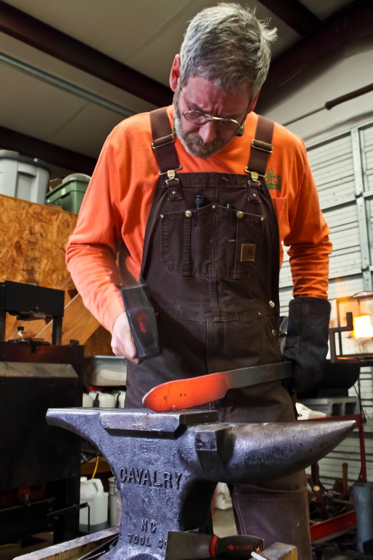 E. Scott McGhee is an ABS Master Bladesmith who lives and works in central North Carolina. Scott learned the art of blacksmithing at Penland School of Crafts at the age of 17 and has played at a coal-fired forge on and off since 1981. In August of 2009, Scott built a gas-fired forge and began bladesmithing in earnest. He obtained American Bladesmith Society Journeyman Certification in 2012, his ABS Mastersmith Certification in 2016, and has been a full-time maker since 2014. In addition to making knives, Scott is an ABS Master Bladesmithing Instructor and teaches knife making at various schools around the country, as well as in his home shop.