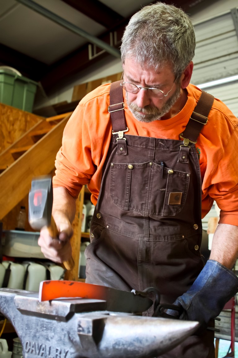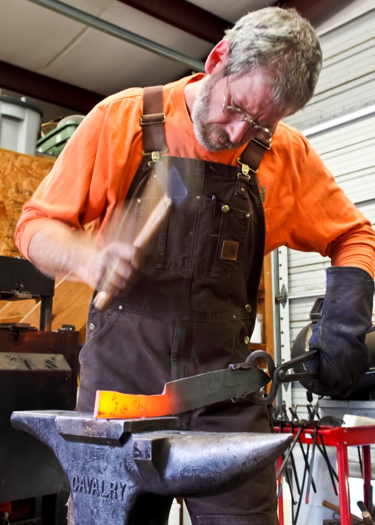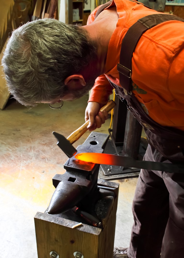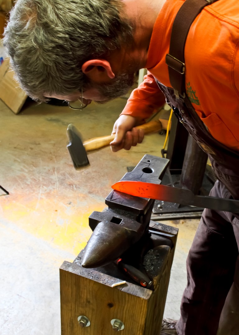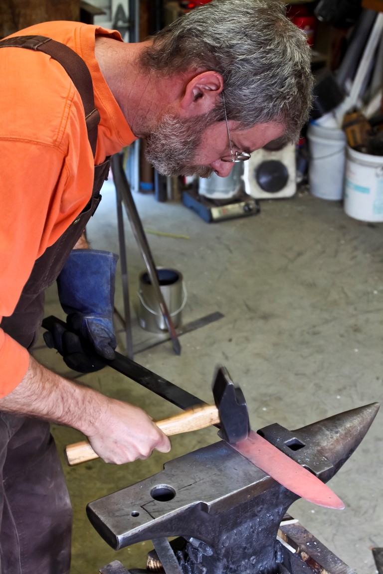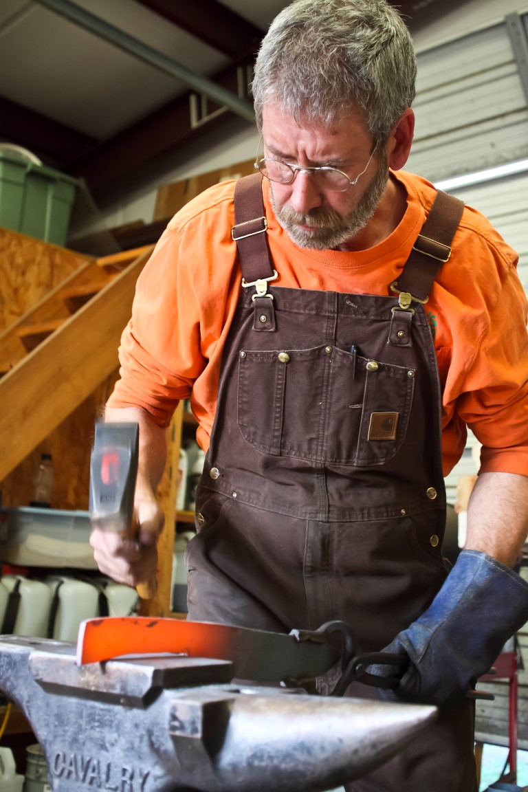 E. Scott McGhee is an ABS Master Bladesmith who lives and works in central North Carolina. Scott learned the art of blacksmithing at Penland School of Crafts at the age of 17 and has played at a coal-fired forge on and off since 1981. In August of 2009, Scott built a gas-fired forge and began bladesmithing in earnest. He obtained American Bladesmith Society Journeyman Certification in 2012, his ABS Mastersmith Certification in 2016, and has been a full-time maker since 2014. In addition to making knives, Scott is an ABS Master Bladesmithing Instructor and teaches knife making at various schools around the country, as well as in his home shop.