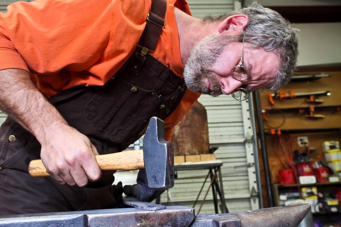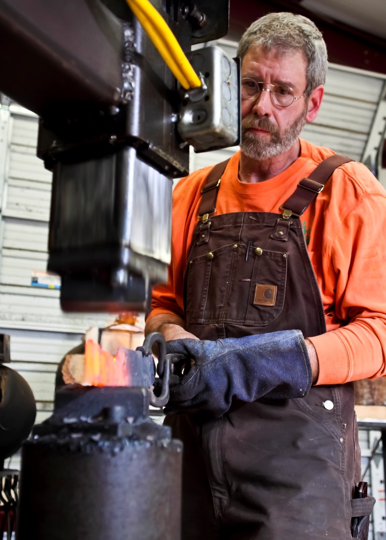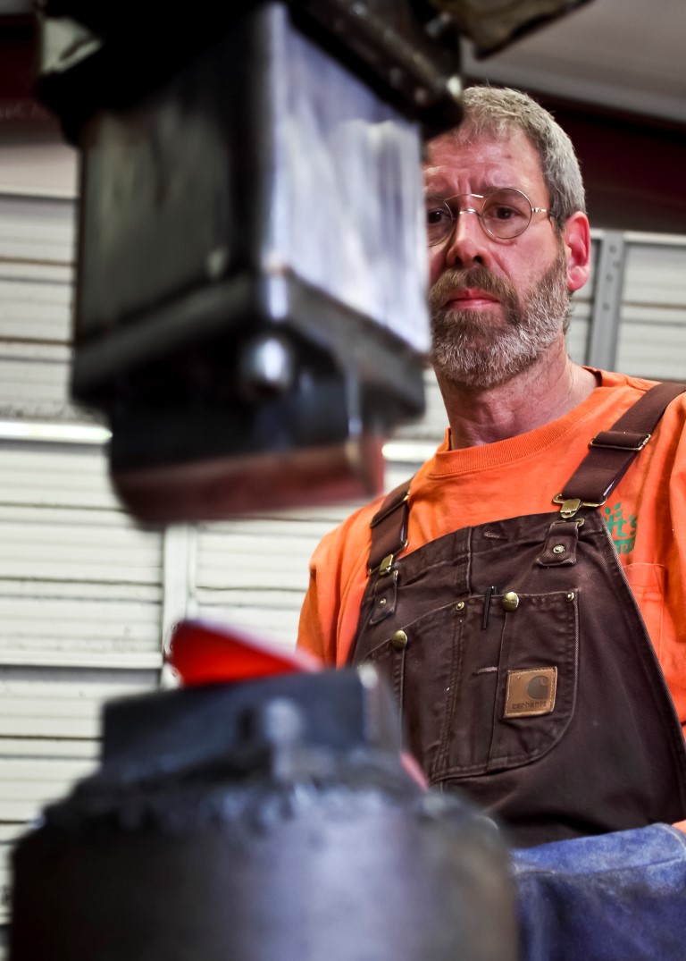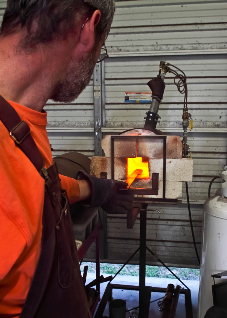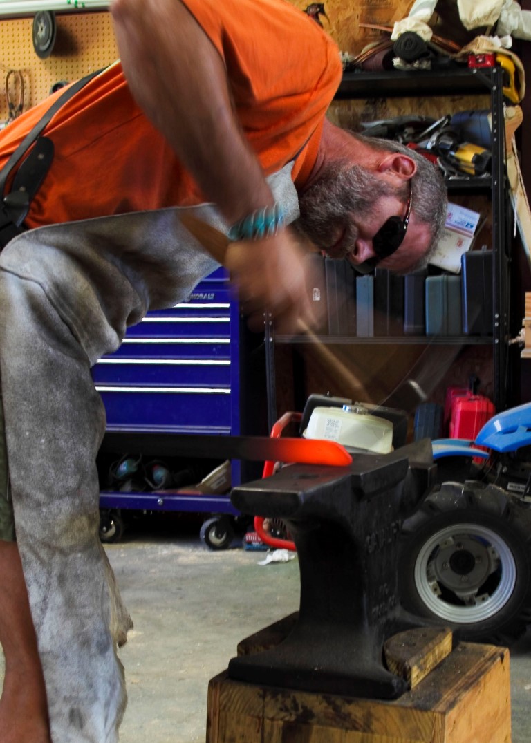 E. Scott McGhee is an ABS Master Bladesmith who lives and works in central North Carolina. Scott learned the art of blacksmithing at Penland School of Crafts at the age of 17 and has played at a coal-fired forge on and off since 1981. In August of 2009, Scott built a gas-fired forge and began bladesmithing in earnest. He obtained American Bladesmith Society Journeyman Certification in 2012, his ABS Mastersmith Certification in 2016, and has been a full-time maker since 2014. In addition to making knives, Scott is an ABS Master Bladesmithing Instructor and teaches knife making at various schools around the country, as well as in his home shop.